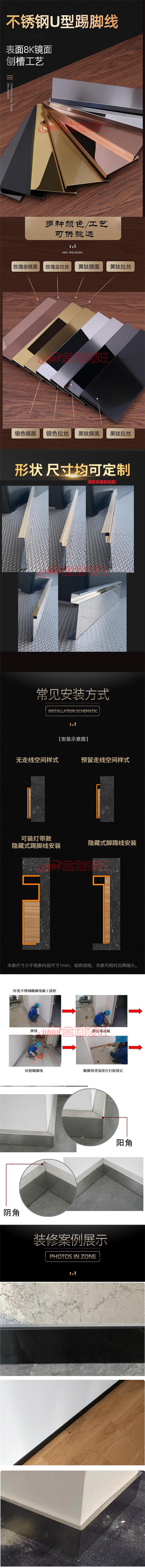 北京批發(fā)啞光拉絲不銹鋼踢腳線 2021-05-1516:48:31北京批發(fā)啞光拉絲不銹鋼踢腳線已關閉評論品名:不銹鋼踢腳線? ??廠家:金利恒不銹鋼材質(zhì):201不銹鋼,304不銹鋼;? ?常用厚度:0.65mm,0.75mm,0.85mm,1.2mm等 ;高度:10cm,8cm,5cm等皆可定制;顏色:白拉絲,黑鈦,灰鈦,鈦金,玫瑰金,香檳金,古銅色等。表面工藝:拉絲,鏡面,噴砂,亂紋 不銹鋼門套踢腳線視頻 贊 2 分享