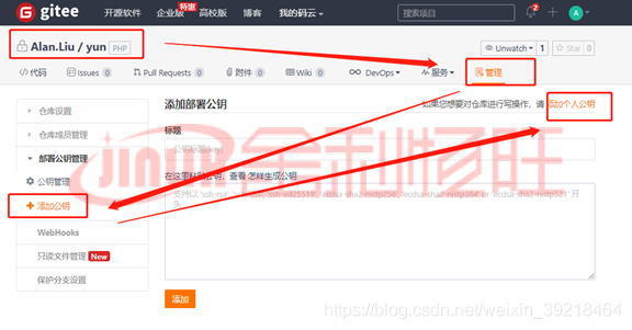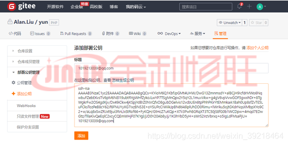 添加個人公鑰,這很重要,只有個人公鑰才能對倉庫有寫的權限