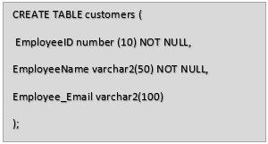編寫以下示例是為了創建包含EmployeeID、EmployeeName和employee_Email列的employee表: