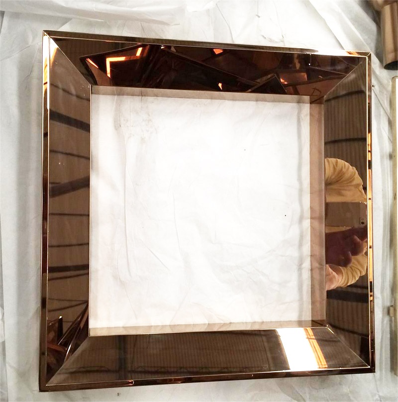 這款鏡面玫瑰金不銹鋼畫(huà)框是經(jīng)過(guò)北京金利恒旺公司精心挑選原材料,精心制作而成,色澤艷麗,光彩奪目。它的制作流程大概是這樣的:剪板下料然后經(jīng)過(guò)刨槽折彎,再經(jīng)過(guò)表面處理之后就加工成成品了。很多設(shè)計(jì)工作室都是從我們這里訂購(gòu)的。產(chǎn)品尺寸和規(guī)格都可以定制加工,滿足您個(gè)性化的需求。