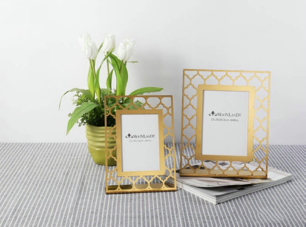 金色鏤空花紋不銹鋼相框定做