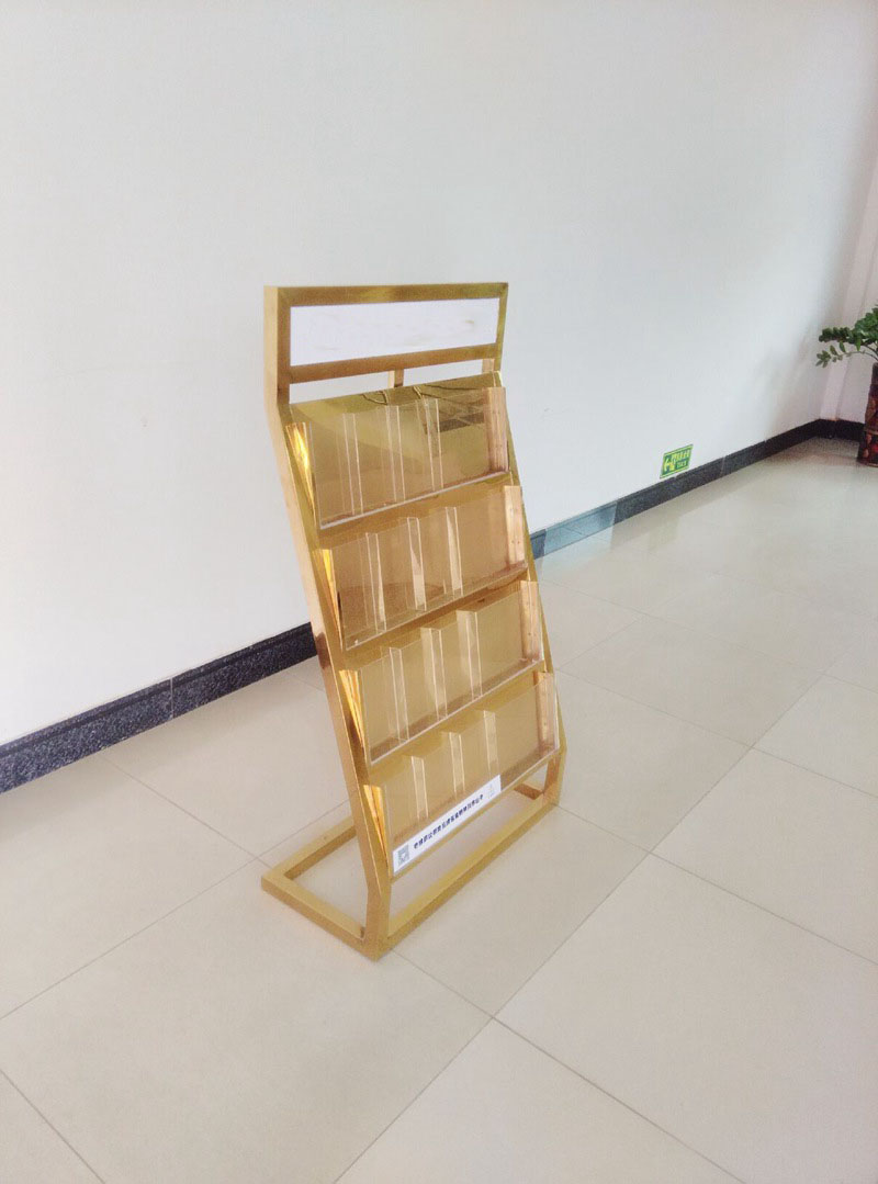 一般的不銹鋼展示架都是銀色的,很普通,但是這款由北京金利恒旺公司加工的不銹鋼展示架卻是金色的,顯得很獨(dú)一無二,高端大氣上檔次。它和普通的展示架制作工藝都差不多,都是先用不銹鋼管切割焊接而成,再經(jīng)過車間師傅的精心打磨拋光,最后的一個(gè)步驟就是鍍鈦工藝,也就是上色的過程。就是把這個(gè)展架放進(jìn)鍍鈦爐里面去進(jìn)行鍍鈦金的一個(gè)過程。