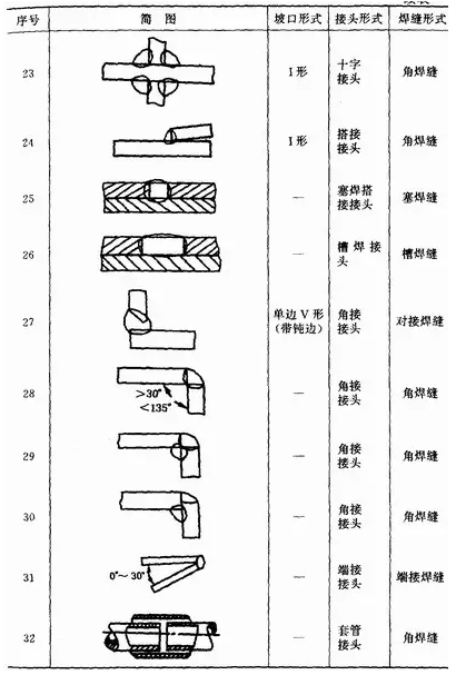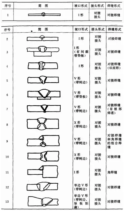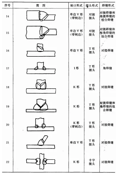 焊接中,由于焊件的厚度、結(jié)構(gòu)及使用條件的不同,其接頭型式及坡口形式也不同。焊接接頭型式有:對接接頭、T形接頭、角接接頭及搭接接頭等。