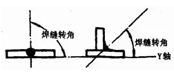 焊縫轉(zhuǎn)角,即焊縫中心線(焊根和蓋面層中心連線)和水平參照面Y軸的夾角,見圖1—14。