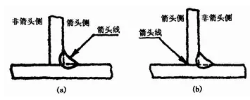 箭頭線相對焊縫的位置一般沒有特殊要求,見圖1—25(a)、(b)。但是在標注單邊V、單邊Y、J形焊縫時,箭頭線應(yīng)指向帶有坡口一側(cè)的工件,見圖1—25(c)、(d)。必要時,允許箭頭線彎折一次,如圖1—26。