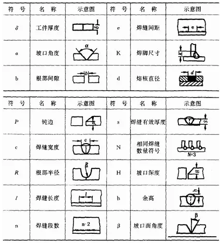 焊縫符號一般由基本符號和指引線組成。必要時還可以加上輔助符號、補充符號和焊縫尺寸符號等。
