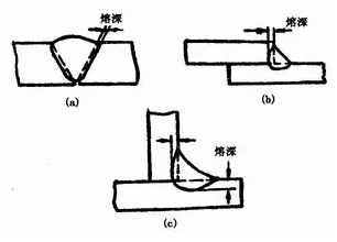 (a)對接接頭熔深??(b)搭接接頭熔深??(c)T形接頭熔深
