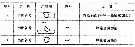 輔助符號是表示焊縫表面形狀特征的符號,見表1—5。應(yīng)用示例見表1—6。