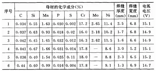 (7)母材的化學(xué)成分??母材的化學(xué)成分不同,在其它工藝因素不變的情況下,焊縫形狀不一樣,這一點在氬弧焊時特別明顯。如三種產(chǎn)地不同的0Cr18Ni19和0Cr18Ni12Mo2不銹鋼,用鎢極氬弧焊方法焊接,采用相同的焊接工藝參數(shù)時,所得焊縫形狀的變化,見表1—10。