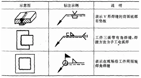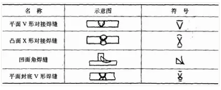 補充符號是為了補充說明焊縫的某些特征而采用的符號,見表1—7。應(yīng)用示例見表1—8。