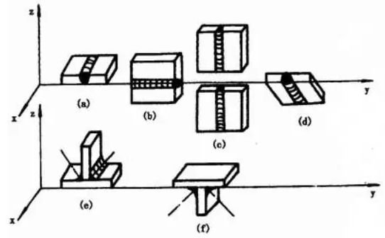 (a)平焊??(b)橫焊??(c)立焊??(d)仰焊??(e)平角焊??(f)仰角焊