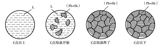 含Sb量低于11%的合金,其結晶后的產物為Pb+(Pb+ Sb)的組織,稱為亞共晶組織;含Sb量高于11%的合金,結晶后的產物為Sb+(Pb+ Sb)的組織,稱為過共晶組織。
