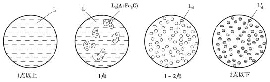 圖1.3.11 亞共晶白口鐵組織轉變過程示意圖