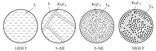 圖1.3.9 共晶白口鐵組織轉變過程示意圖