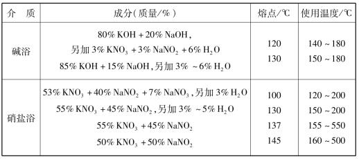表1.4.2 常用堿浴、硝鹽浴的成分、熔點及使用溫度