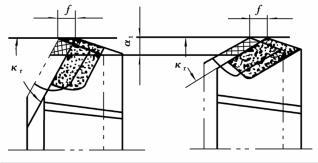 圖5.1.11 主偏角對(duì)切削寬度和厚度的影響