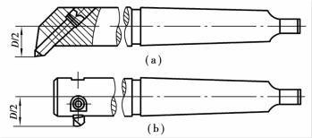 如圖5.2.36所示,單刃鏜刀是把鏜刀頭垂直或傾斜安裝在鏜刀桿上。鏜刀頭垂直安裝的可鏜通孔,傾斜安裝的可鏜盲孔。與車削加工相似,孔徑尺寸要靠調整刀頭的懸伸長度來保證,較為麻煩,且要求有較高的操作技術。這種鏜刀多用于單件小批生產中。