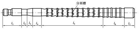 圓孔拉刀如圖5.2.54所示。l1為柄部,l2為頸部,l3~l7為工作部分。各部分的名稱和作用如下: