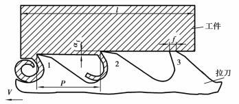 圖5.2.55 拉刀刀齒的幾何形狀1,2—切削齒 3—校正齒