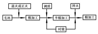 熱處理工序在工藝過程中的安排,主要取決于零件材料和熱處理的目的。一般情況下可按圖5.3.8所示安排。